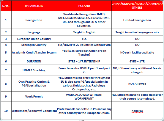 Career: Practice all over the world. Doctors in Poland can also run their own private practice/clinics.